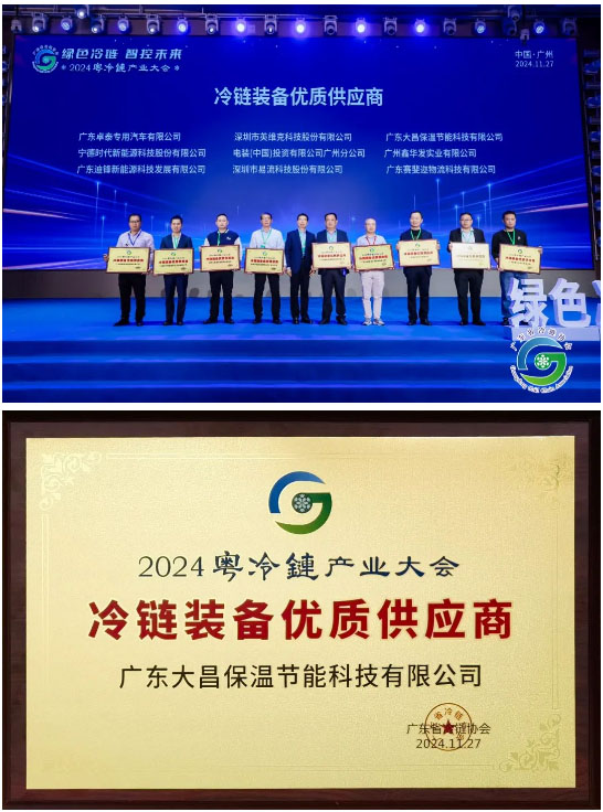 大会将以“绿色零碳冷链物流走廊”启动仪式拉开序幕,标志着粤冷链在冷链物流领域迈出了绿色发展的坚实步伐,响应国家关于绿色发展的号召,也为行业树立新的标杆。大昌保温在本次大会中荣获2024粤冷链产业大会“冷链装备优质供应商”。